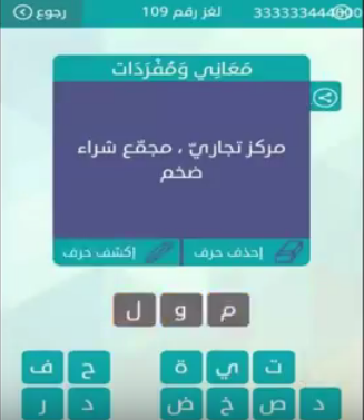 اجابة لغز مركز تجارى مجمع شراء ضخم لغز رقم 109 من لعبة وصلة فى المجموعة الثالثة عشرة صقور الإبدآع