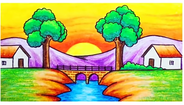 رسم منظر طبيعي سهل خطوة بخطوة للمبتدئين