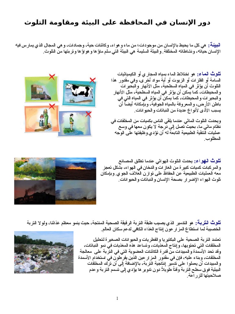 دور الإنسان في المحافظة على البيئة ومقاومة التلو ث الموسوعة المدرسية