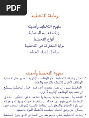 هو عبارة عن مهمة ادارية تهدف إلى تحديد أهداف المنظمة و هو أول عناصر الإدارة و يعرف التخطيط أيضا بأنه هو المنهج الإنساني الذي يهدف إلى اتخاذ القرار في الوقت الحاضر و ينعكس أثر ذلك على المستقبل بالطبع التخطيط هو أول. بحث عن التخطيط الاجتماعى. بحث عن الشباب والمشاركة السياسية بعد الثورة المصرية. الخطوات العملية للتخطيط مهما كانت المشكلة فإن هناك خطوات ينبغي إتباعها لمعالجة المشكلة تخطيطيا وهذه الخطوات كالآتي.