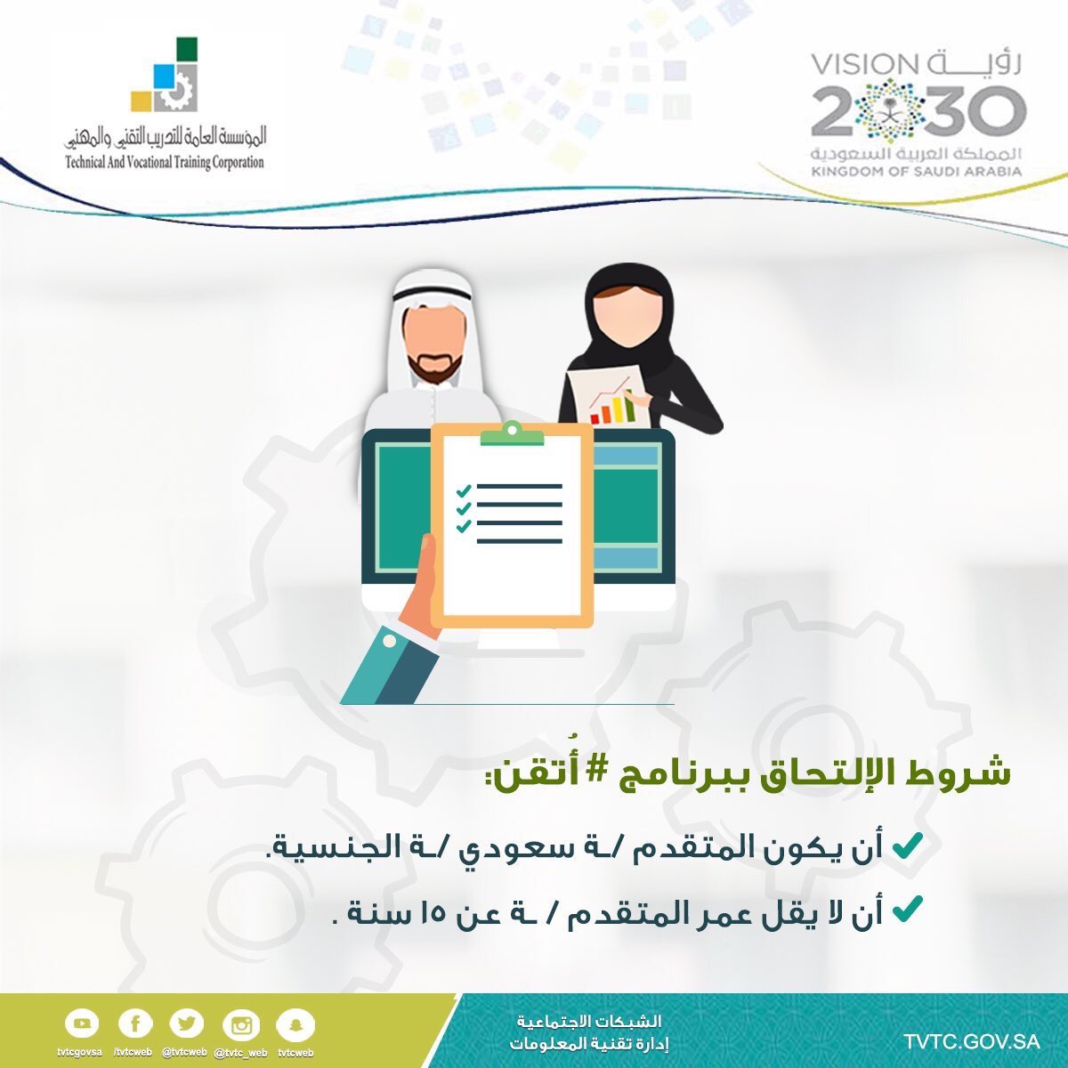 برنامج اتقن الكلية التقنية. كما أكدت المؤسسة من خلال بيان لها أن الدورات التدريبية التي يتم تقديمها من خلال برنامج اتقن تشتمل على ما يلي. التدريب التقني والمهني اعلن عن فتح باب التسجيل في برنامج أ تقن حيث تتجه عمليات البحث بداخل الأراضي الحجازية السعودية من قبل المواطنين السعوديين. هذه البرامج تهدف إلى تقديم التدريب التقني والمهني لأفراد المجتمع من خلال تنفيذ برامج قصيرة موضح ا أن مدة المرحلة الخامسة أربعة أسابيع ومدة التدريب لكل برنامج أسبوع. التسجيل في دورات برنامج أتقن الكلية التقنية ووفقا لما جاء في بيانها اليوم فقد أكدت المؤسسة على أن بداية التسجيل في الدورات التدربية والتي ستكون مدتها أربع أسابيع سيكون في 16 6 1439 مشيرة بأن تلك الدورات تستهدف 5 آلاف.